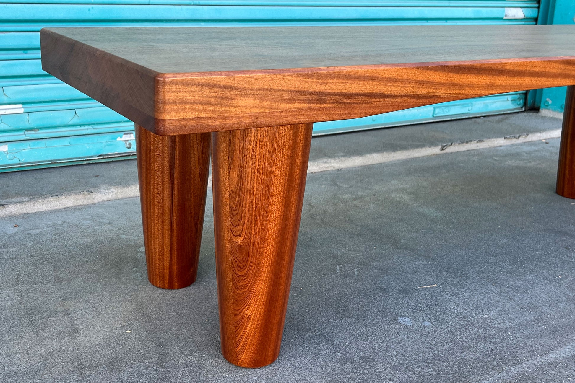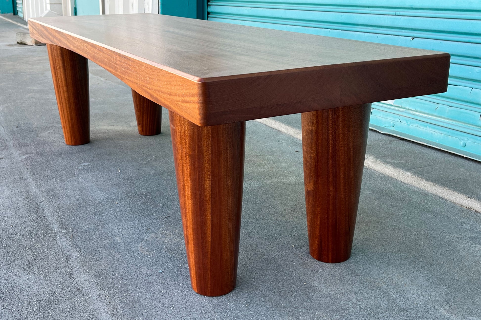 Bench handcrafted with thick cut wooden Slabs